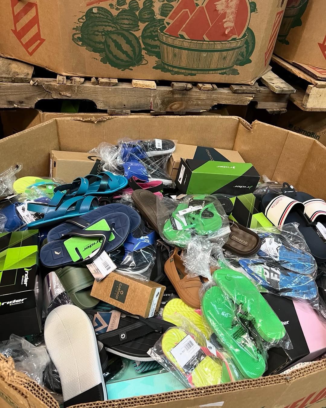 200 pairs per pallet BRAND NEW condition Mix of mens, womens, and kids High quality, made in Brazil Each pallet has a wide variety of styles and sizes