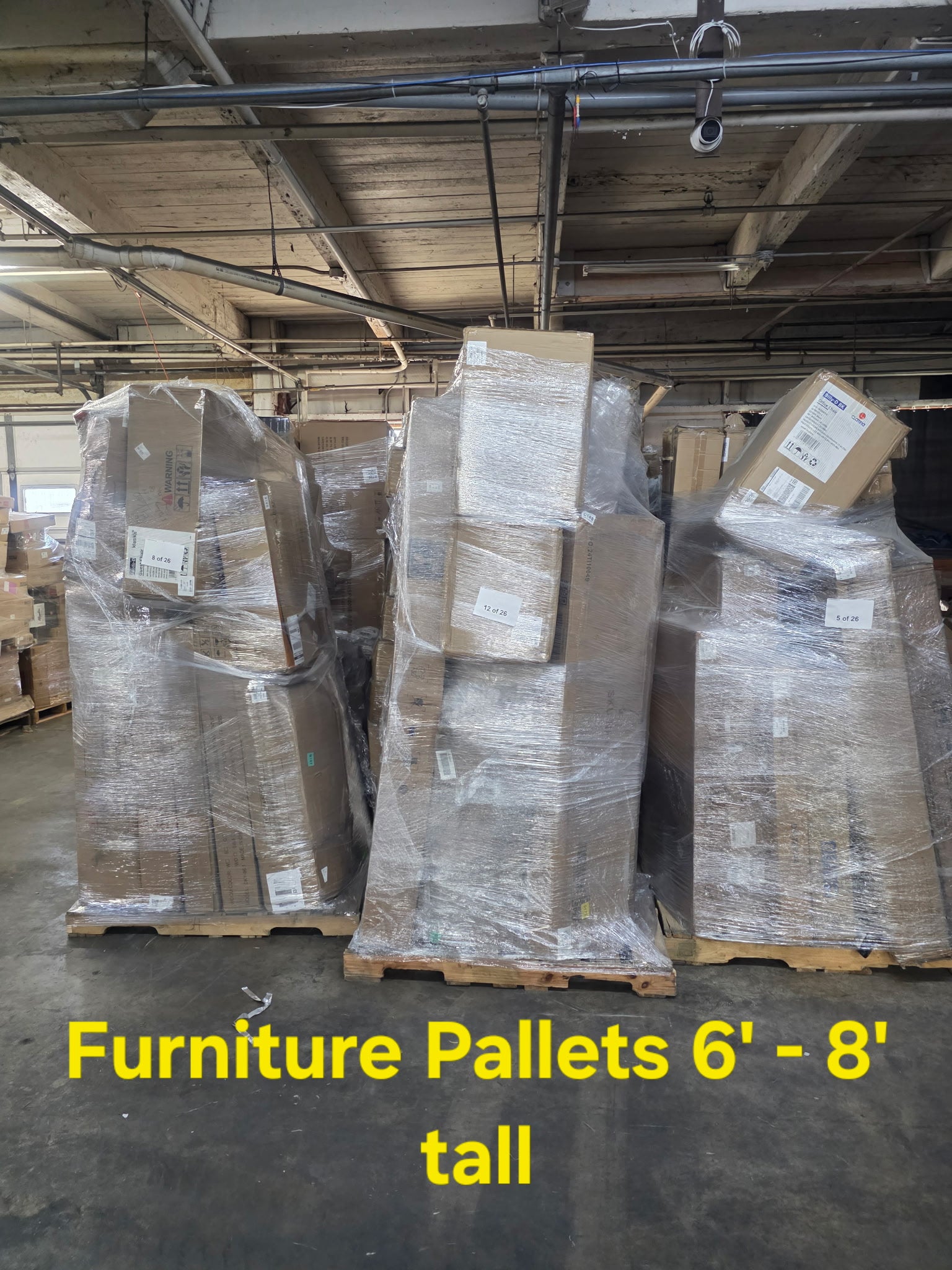 Wholesale Furniture Pallet ranging in size from 6FT-8FT tall.