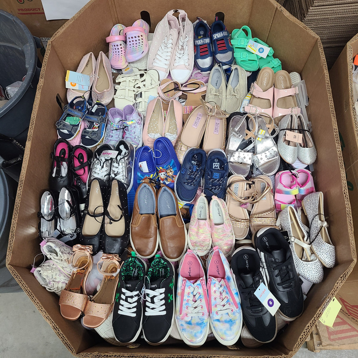 Wholesale kids shoes pallet from TargetIncludes various types of kids shoesShoes are for spring and summer seasonsMixed sizes and stylesContains sneakers, sandals, flip flops, and more95% brand new250 pairs per pallet$975 per pallet