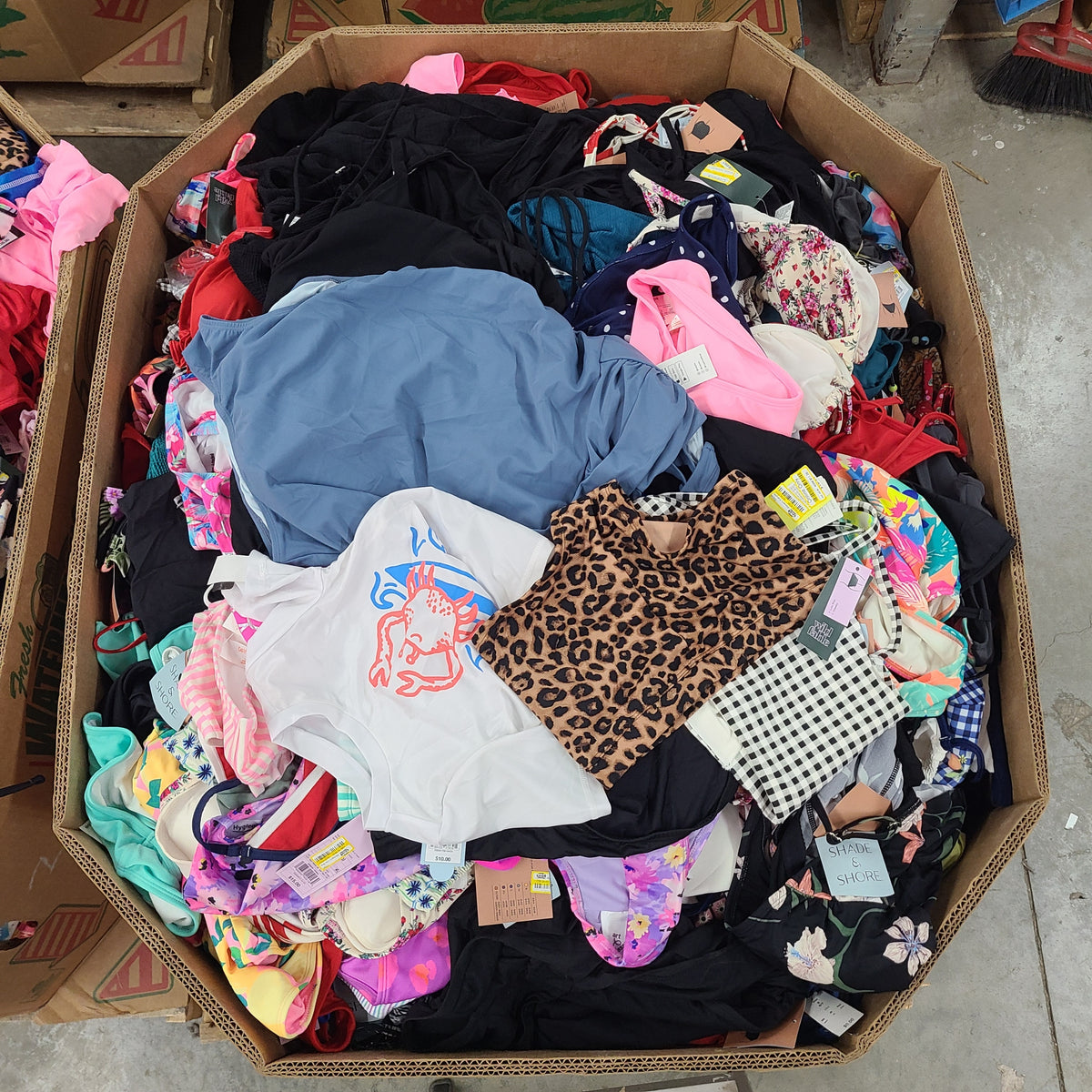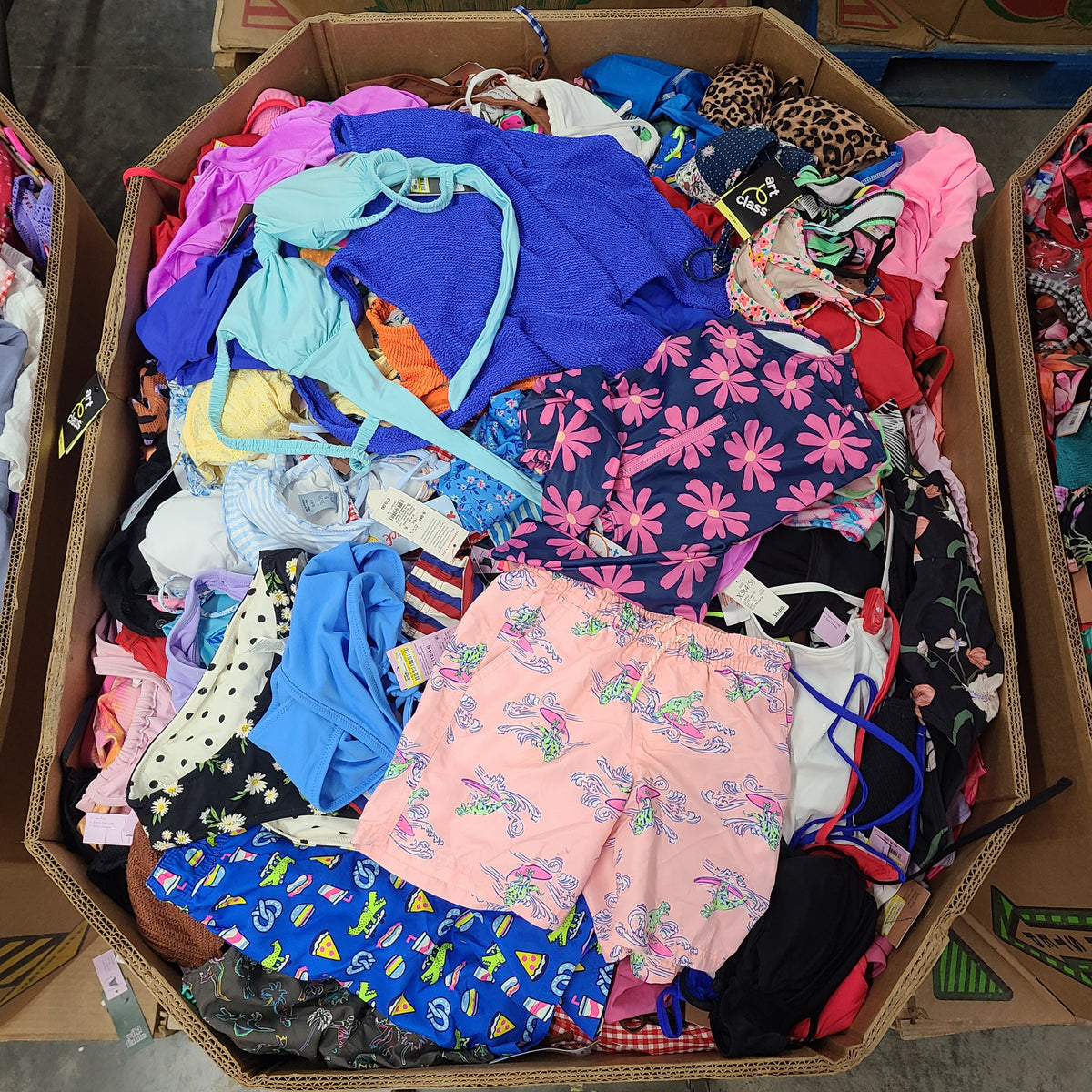 Bulk swimsuits from TargetMix of womens, mens, and kids800-900 pieces$1000 per palletVariety of styles and sizesCondition: 99% Brand new
