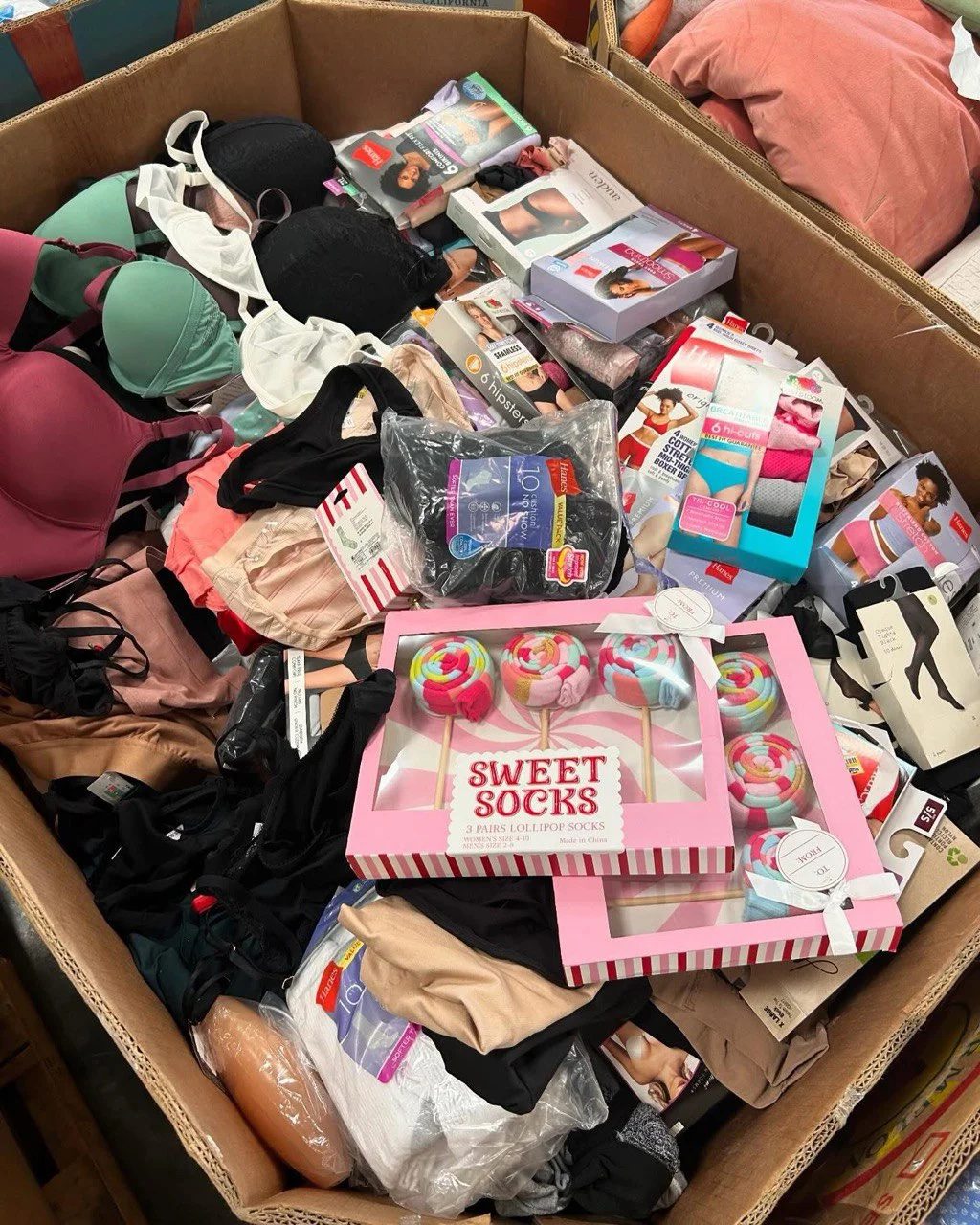 Discover unbeatable value with our premium mixed box of women’s intimate wear and essentials. This assorted lot includes a variety of brand-new items such as bras, panties, shapewear, hosiery, and cozy accessories like novelty socks. Each pallet is carefully packed with a diverse range of styles, colors, and sizes to meet the needs of modern women.